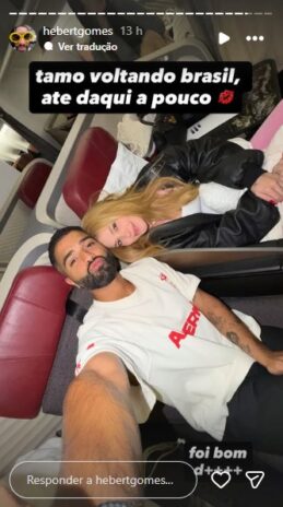 Dentro do aeroporto, o criador de conteúdo brincou, já que a mãe de Maria Alice, Maria Flor e José Felipe fez um voto religioso e está sem mexer no celular: “Ela só queria paz neste domingo e eu: ‘Não vai ter, não’. Todo mundo está vendo ela por aqui, pelo meu perfil, e vai continuar”.