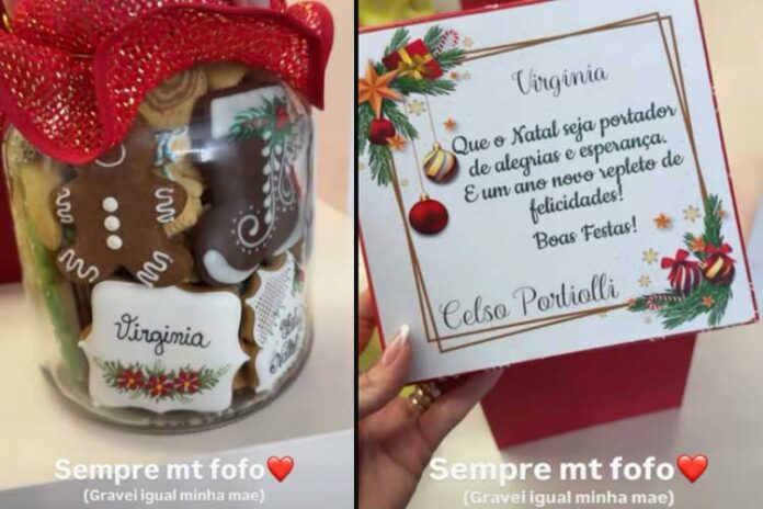 Virginia Fonseca mostrou o presente especial recebido do apresentador do “Domingo Legal”, Celso Portiolli. Nesta segunda-feira (08), a empresária publicou um Stories mostrando uma caixa vermelha acompanhada de um cartão de Natal.