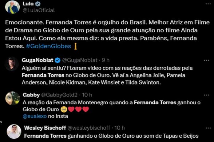 “Emocionante. Fernanda Torres é orgulho do Brasil. Melhor Atriz em Filme de Drama no Globo de Ouro pela sua grande atuação no filme Ainda Estou Aqui. Como ela mesma diz: a vida presta. Parabéns, Fernanda Torres”, escreveu em seu perfil.
