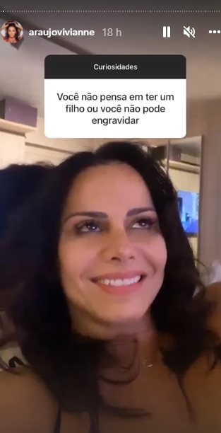 Quanto à idade Viviane não vê problema “A ciência está aí para ajudar isso. Ajudar a mulher a ter filho na hora que ela realmente quiser. Estou nesse caminho aí, gente”.