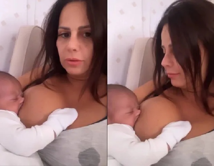 Araújo contou como são as mamadas de Joaquim: “Não dorme, não, que o outro [peito] está aqui te esperando. São 20 minutinhos em cada mama. Agora, vamos trocar que o outro [peito] já está aqui vazando esperando você”, disse ela.
