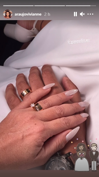 Viviane exibiu um clique onde ela e o marido mostram as mãos de ambos já com alianças, confirmando que ela e o noivo resolveram oficializar a união, o registro foi feito na parte dos Stories da plataforma digital da famosa.
