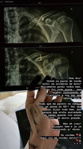 Por fim, o guitarrista garantiu que adotará todo o empenho necessário para que esteja em plenas condições de retornar ao palco com os seus companheiros do NX Zero. “Sei que vai ficar tudo bem, mas parece que minha ansiedade em saber quando vou estar 100% é muito grande. Ficarei bem e já já ensaiando para os shows. Se cuidem! Aqui vou me cuidar muito”, despediu-se.