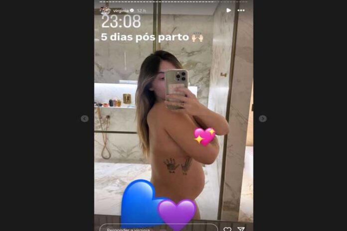 No registro, a apresentadora do “Sabadou com Virginia” aparece em frente ao espelho cinco dias após o parto, mostrando a diminuição do tamanho de sua barriga. “5 dias após o parto”, legendou. Virginia e Zé Felipe já são pais de Maria Alice e Maria Flor, e costumam compartilhar a rotina da família por meio de suas redes sociais.