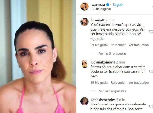 Logo após o seu pronunciamento, Wanessa Camargo recebeu muitos comentários carinhosos no Instagram. “Você não errou, você apenas viu quem ele era desde o começo. Vai ser inocentada com o tempo, só aguarde”, comentou um deles.