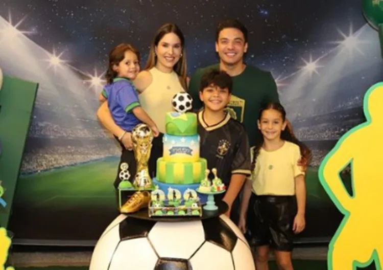 Em seu perfil no Instagram, Safadão publicou um registro da comemoração. Na imagem, ele aparece com o aniversariante, a atual mulher, Thyane Dantas, e os filhos do segundo casamento, Ysis, de 8 anos, e o caçulinha Dom, de 4. O tema escolhido foi a Copa do Mundo. “ 12 anos do Yhudy!”, escreveu o artista na legenda.