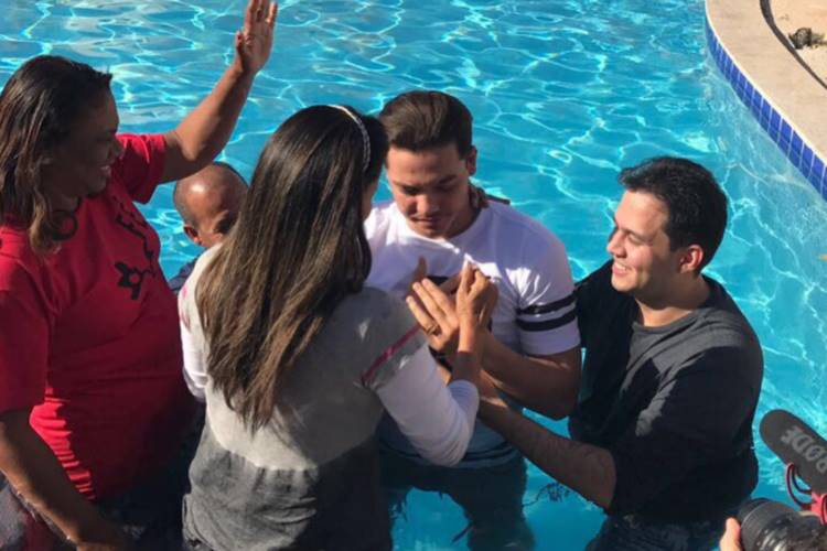 “No aniversário do meu casamento, recebemos o maior presente que poderíamos receber: três dias aprendendo muito sobre Deus e nos firmando cada dia mais como família! Hoje fechamos esses dias com um momento indescritível. Desci às águas declarando minha fé e meu amor por Deus! Fui batizado junto do meu amor @thyane_dantas e sabemos que Deus vai completar a obra tão linda que Ele começou em nós”, contou Wesley