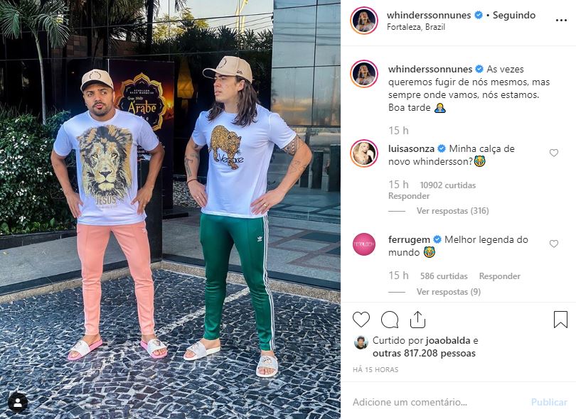 Mas teve quem também falou sobre a foto de Whindersson. “Pensamento do dia”, “Melhor legenda do mundo”, “Profundo”, “A tampa e a panela”, “Ícones”, “Fã demais de vocês dois”, foram alguns dos comentários dos seguidores do humorista.