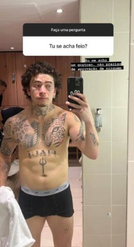 Dessa forma, diante do questionamento do internauta, Whindersson Nunes não pensou duas vezes ao surgir só de cueca em frente a um espelho, tirando uma foto e publicando em resposta ao fã/hate. “Tu se acha feio?“, quis saber o seguidor. “Eu me acho um gostoso“, disparou ele, que ainda completou: “Não preciso da aprovação de ninguém“, disse.