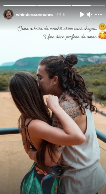 No clique, o casal surge coladinho, onde Whindersson dá um beijão no rosto da amada, e na legenda ele utilizou a letra de uma música de Bruna Karla. “Como a brisa da manhã, assim você chegou, uma ótica perfeita do amor”.
