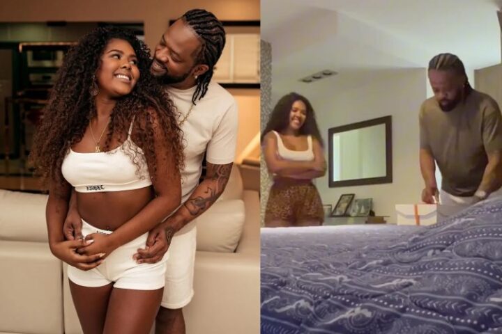 O cantor ficou emocionado ao entrar em seu quarto e encontrar uma caixa misteriosa deixada por sua esposa sobre a cama. Ao abri-la, descobriu a feliz notícia e, em êxtase, correu em direção a Thay Pereira para abraçá-la e comemorar a novidade.