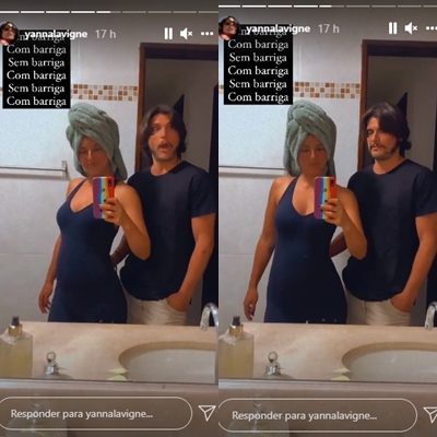 Através de seu Instagram na ferramenta dos Stories ela e o esposo surgiram brincado com as curvas da sua barriguinha da segunda gestação. A atriz mostrou que a barriga só é notada mesmo de perfil. “Sem barriga, com barriga”, escreveu ela na publicação.