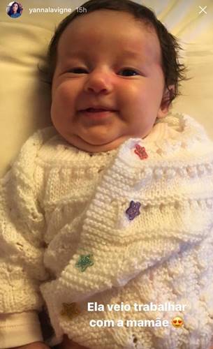 Nesta quinta-feira (17), a atriz compartilhou no Instagram Stories fotos fofíssimas da neném, que é fruto do relacionamento com Bruno Gissoni. “Ela veio trabalhar com a mamãe. Meu grude”, escreveu Yanna nas legendas das imagens em que a bebê aparece toda sorridente