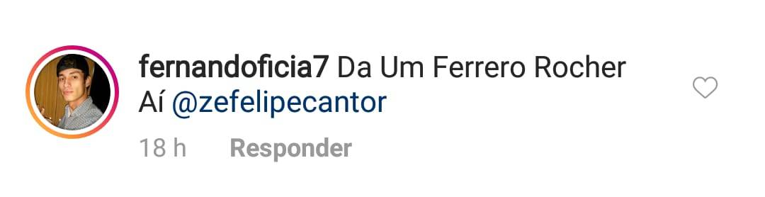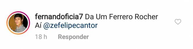 “Da um Ferrero Rocher aí Zé Felipe”, pediu o fã, que reparou que o sertanejo tinha vários chocolates do lado da sua poltrona.