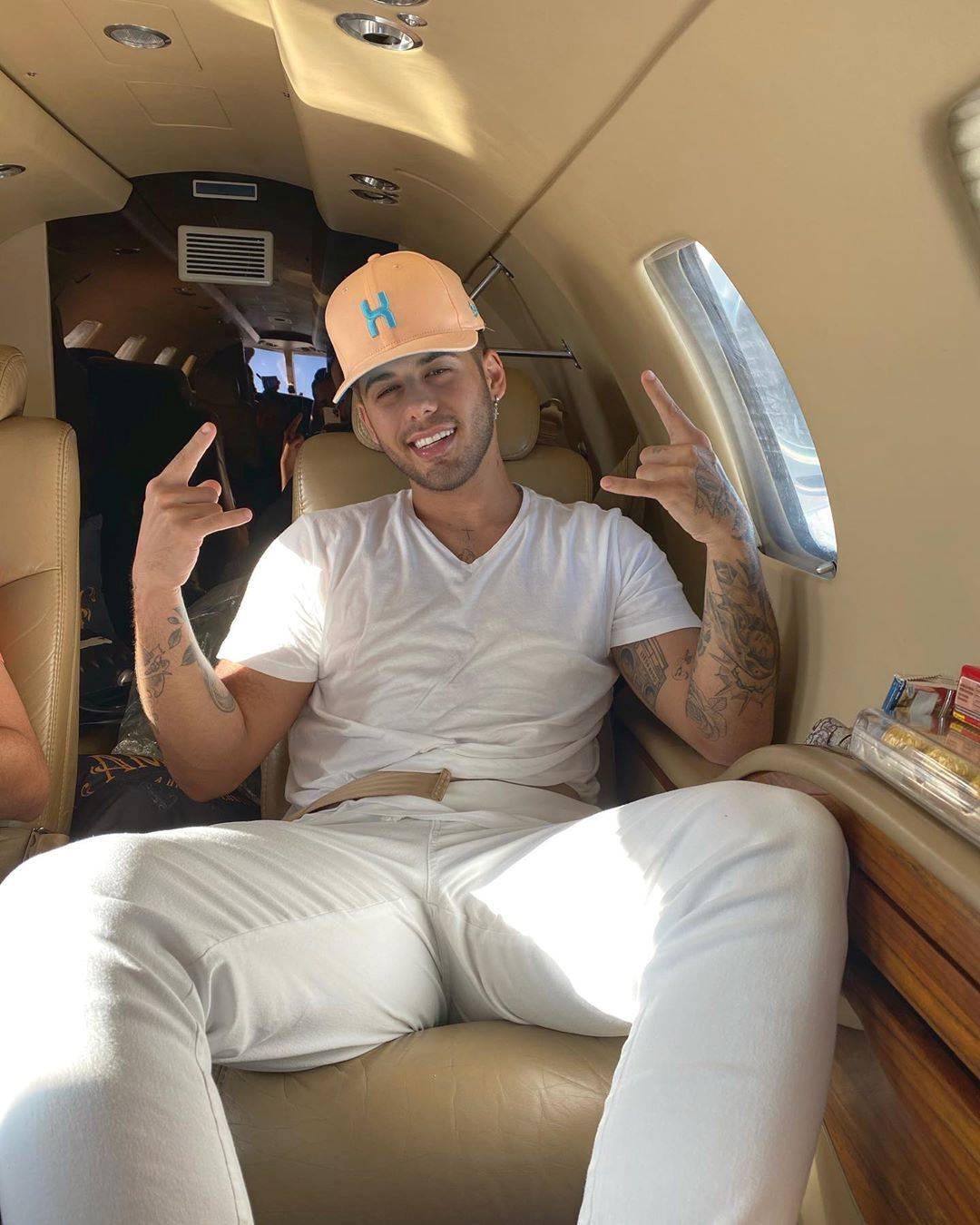 Na foto Zé Felipe aparece usando uma camisa e uma calça branca, além de estar de boné. No registro ainda da para ver algumas guloseimas que estava no jatinho para que o sertanejo pudesse se deliciar durante a viagem.