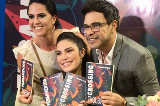 A sobrinha da dupla Zezé di Camargo e Luciano, Emanuely Camargo, de 16 anos, lançou seu primeiro livro durante uma noite de autógrafos, na última terça (14).