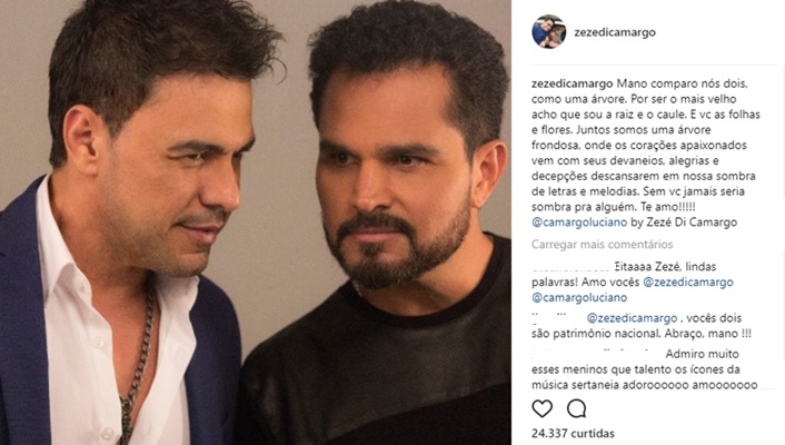 Zezé Di Camargo usou seu perfil do Instagram para rebater os rumores de crise na relação com o irmão e parceiro, Luciano! Nesta segunda-feira (14), o sertanejo compartilhou uma foto ao lado do companheiro e exaltou a parceria entre eles.