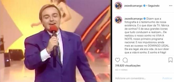 Na legenda, ele ressaltou o quanto o apresentador foi fundamental para que eles ficassem conhecidos por todo o Brasil, e como ele tinha o dom de transformar sonhos em realidade. Além disso, Zezé também lamentou a sua morte.