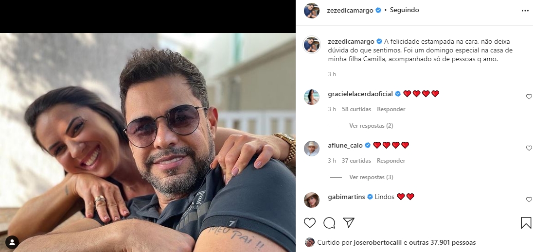 Seguidores não demoraram a comentar na publicação do cantor destacando a alegria e como é bom vê-los juntos: “A felicidade estampada no sorriso de quem ama…a felicidade de atender o help de quem chama…”, Que lindo ver esses dois”, “Que casal maravilhoso amo demais”. esses foram alguns comentários.