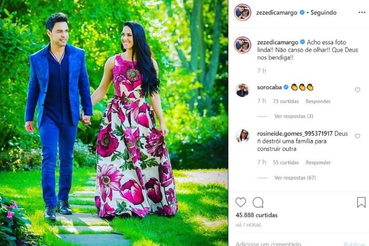 Em poucas horas de publicada, a imagem já ultrapassava a casa das 45 mil curtidas e nos comentários, os fãs elogiaram bastante: “Você é show! top Zezé e Graciele, eu sou muito fã de vocês demais”, disse uma admiradora. “Quando quero mencionar um homem de verdade: menciono você”.