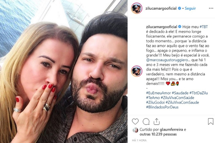 Para concluir, Zilu se declarou: “Pois o que é verdadeiro, nem mesmo a distância apaga! Saudades e te amo demais”.