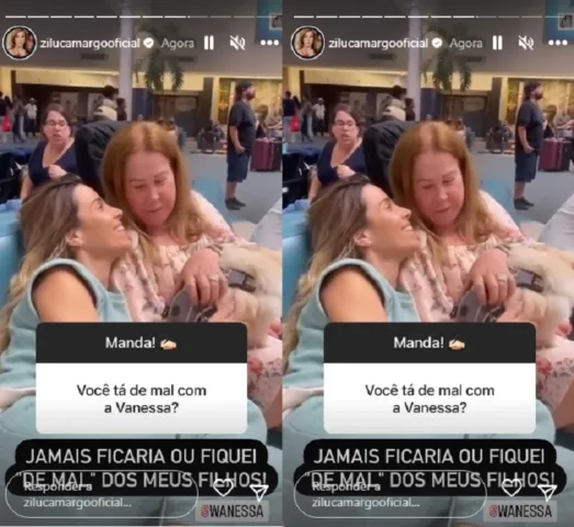 A influenciadora digital Zilu Godoi abriu a famosa caixinha de perguntas no Instagram, na manhã desta quinta-feira (15), e respondeu às dúvidas dos seguidores. Uma fã da socialite questionou se a famosa estaria brigada com Wanessa, então a ex-mulher de Zezé di Camargo respondeu.