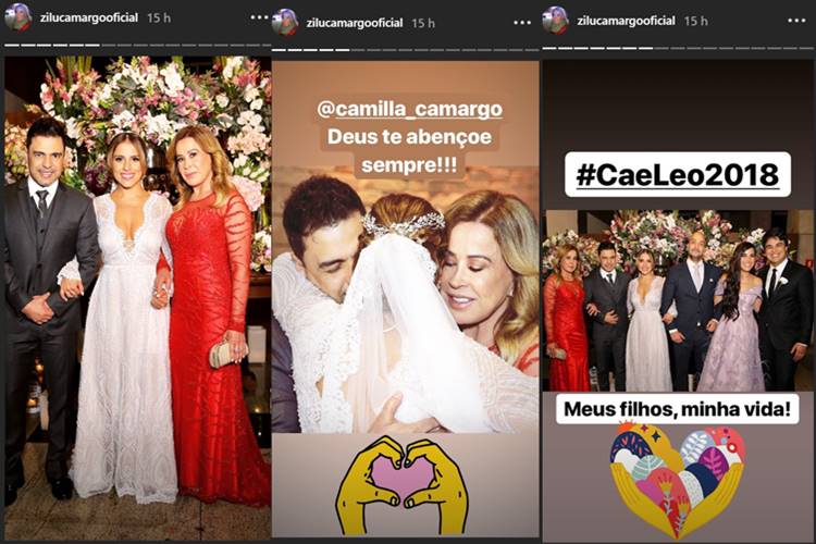 Zilu usou seu Instagram, para postar a foto do seu look, ao lado de seu amado: “Casando minha princesa @camilla_camargo com meu novo genro @leonardolessalopes e ao lado do meu príncipe @marcoaugustoruggiero!”.