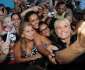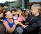 Do lado de fora, fãs aguardavam a chegada da loira, que sempre atenciosa, fez a alegria da galera tirando fotos, com seu público.