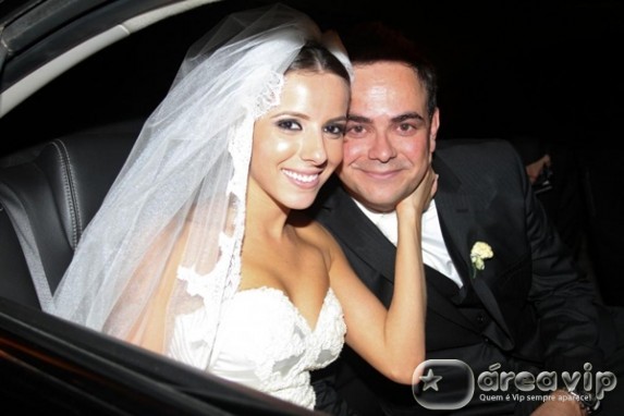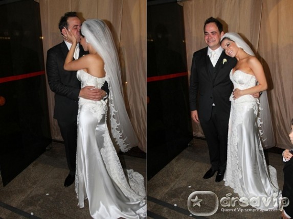 O casal tem dois filhos, Nicolas e Lorena, que levaram as alianças até o altar. O noivo vestia Ricardo Almeida e a noiva teve o vestido assinado pela estilista Lethicia Bronstei.