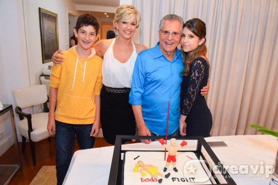 O apresentador Carlos Alberto de Nóbrega comemorou seu aniversário, de 79 anos, ao lado da mulher Andréa Nóbrega, da família e de amigos famosos em sua casa em São Paulo.