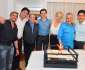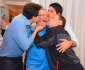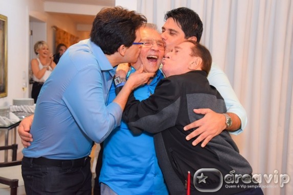 Para comemorar, o apresentador ganhou beijinho triplo de seus amigos Cesar Filho, Raul Gil e Celso Portiolli.