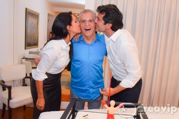 Com bolo provocativo, Carlos Alberto de Nóbrega comemora 79 anos com beijo triplo – Veja as fotos!
