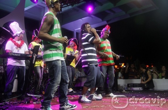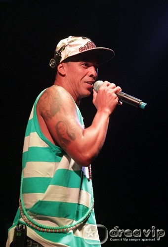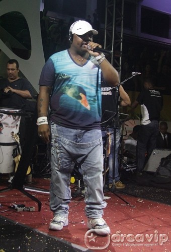 Falcão fez uma rápida participação durante o show de Leandro Sapucahy.