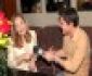 O jornalista Celso Teixeira cumprimenta Sonia Abrão.