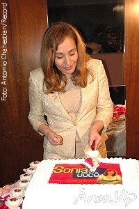 A apresentadora Sonia Abrão comemorou na noite de ontem o primeiro ano do programa Sonia e Você na TV Record. Para festejar a data, a emissora ofereceu um coquetel para a imprensa e convidados na badalada pizzaria La Gloria, em São Paulo. Além de famosos, Sonia também recebeu o marido, o filho e seus irmãos, que também são seus parceiros de trabalho.