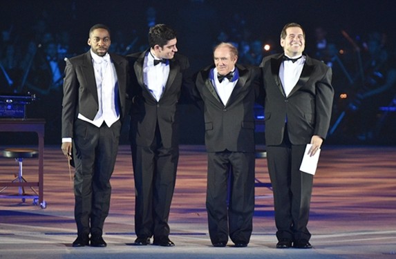 O ‘Tema da Vitória’, canção instrumental brasileira composta pelo maestro Eduardo Souto Neto para as transmissões da Fórmula 1 da Globo, deu o tom de um dos momentos mais emocionantes do show. Com a orquestra regida por João Carlos Martins, e com solo de guitarra de Lulu Santos, Galvão Bueno subiu ao palco com o Time de Ouro do esporte (Giba, Tande, Guga, Maurren Maggi, Hortência, Flávio Canto, Tande, entre outros) para narrar momentos históricos e inesquecíveis do esporte brasileiro. Para matar a saudade de heróis nacionais, uma surpresa: o carro de Ayrton Senna surgiu no palco enquanto Galvão narrava uma vitória do campeão.