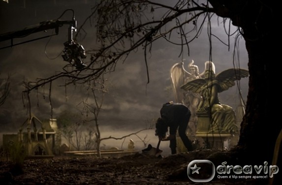 Se na vida real o cemitério é o último lugar que alguém gostaria de visitar, na ficção é um passeio e tanto. Na noite desta quarta-feira, dia 8, no Rio de Janeiro, a imprensa conheceu o cemitério cenográfico de ‘Amorteamo’, nova série da Globo que estreia dia 08 de maio. Os jornalistas acompanharam a gravação de uma cena na qual um dos mortos-vivos retorna ao túmulo e puderam ver todo o sofisticado trabalho de cenografia e produção de arte do espaço. Além de um céu formado por um painel de 360 graus pintado à mão e 800 m² ocupados por areia, outro destaque são as 15 esculturas de isopor delicadamente esculpidas e que reproduzem mármore.