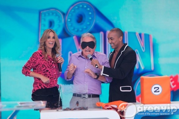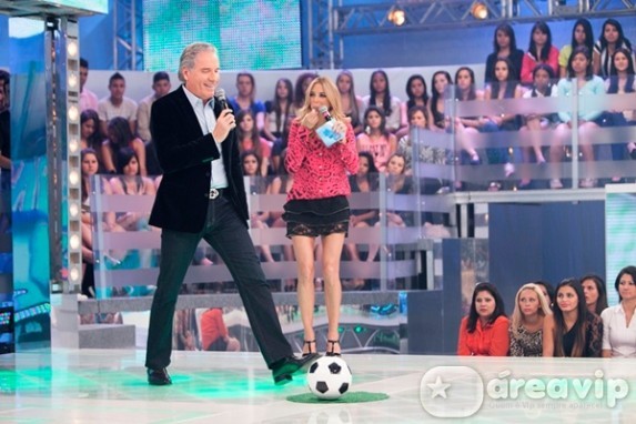 Ao lado do ex-marido, a loira mostra que o clima entre os dois é de descontração enquanto o coloca na maior cilada em Chuta Pra Fora ou Chuta Pro Gol?. No quadro, o empresário precisa dizer se faz um golaço para quem ele admira ou se manda a bola para bem longe, caso ele não simpatize com o famoso da vez.