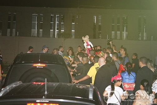 Ao sair do ginásio, uma multidão aguardava a apresentadora, que pacientemente atendeu alguns fãs.