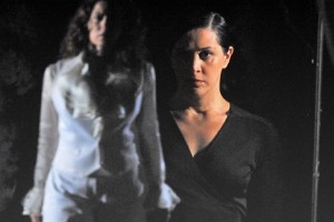 Obcecada, porém, a nova proprietária do rancho Fontini não dá atenção às palavras do mordomo e, conforme o previsto, vai atrás da mulher. Donatela, por sua vez, ao notar que Flora está hipnotizada por ela, a atrai para um teatro em que elas fizeram um show no passado. Ao entrar no local em ruínas, a vilã, com receio, procura por Donatela quando, de repente, escuta a voz da rival e, para seu espanto, vê sua imagem refletida num espelho.