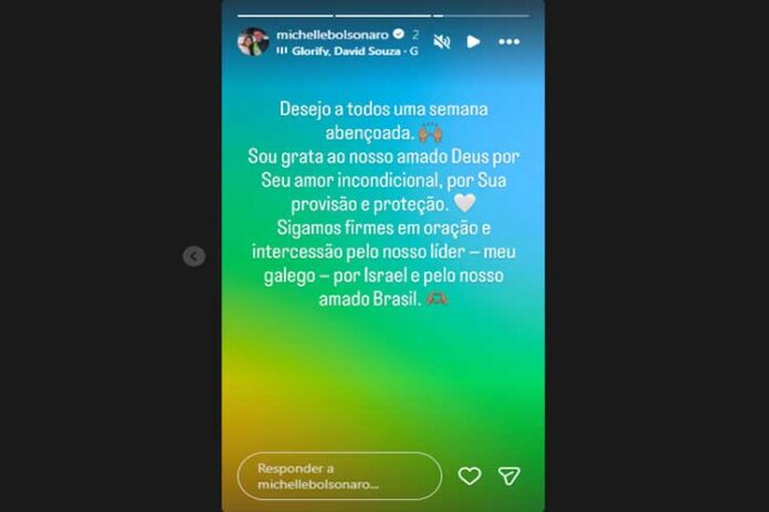 “Desejo a todos uma semana abençoada! Sou grata ao nosso amado Deus por seu amor incondicional, por sua provisão e proteção. Seguimos firmes em oração e intercessão pelo nosso líder – meu galego – por Israel e pelo nosso amado Brasil”, completa Michelle.