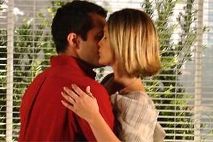 Gabriel não resiste: “(…) Quer saber, sua cara é altiva, seu queixo é erguido… mas sua boca… pede um beijo”, ele diz, para em seguida agarrar Dafne e lhe dar aquele beijo! A loura, surpresa, se deixa beijar…