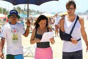 Carla Marins e Claudio Lins estiveram em uma praia do litoral de São Paulo para gravar Uma Rosa Com Amor.