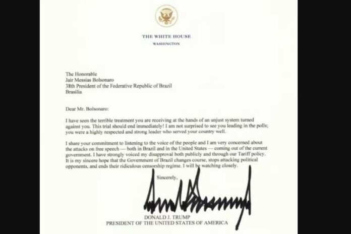 Donald Trump publicou uma carta endereçada a Jair Messias Bolsonaro na última quinta-feira (17). No texto, o presidente dos Estados Unidos votou a defender o político do PL e teceu críticas a Justiça Brasileira.