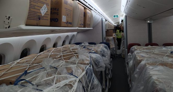 É o primeiro lote de um total de 240 milhões de máscaras compradas pelo Ministério da Saúde no último mês com um investimento de R$ 694,3 milhões. A encomenda totaliza 960 toneladas e será transportada da China até o Brasil com apoio do Ministério da Infraestrutura através de 42 voos. São 200 milhões de máscaras cirúrgicas e 40 milhões de máscaras N95.