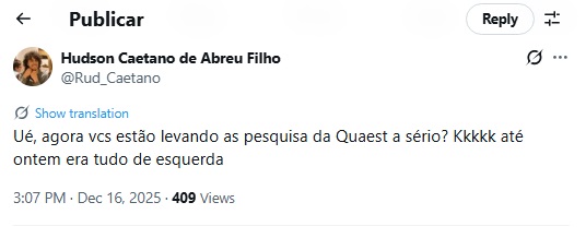 Porém, o que Nikolas não contava era que os internautas iriam critica-lo devido a posicionamentos antigos dele, como de não confiar em pesquisas de intenção e até mesmo relembrá-lo de pronunciamentos recentes dele.