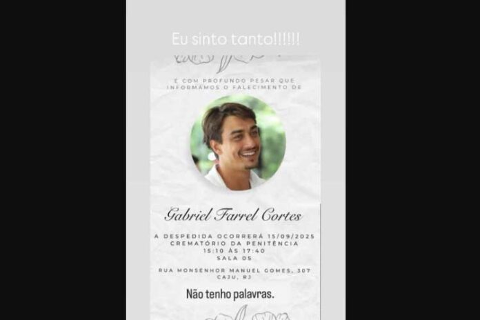 O jovem morreu após salto de paraquedas na região da Barra da Tijuca, Zona Sudoeste do Rio. Ele era fundador da franquia Borda e Lenha. Mariza Farrel, mãe de Gabriel, lamentou a morte do filho nas redes sociais.