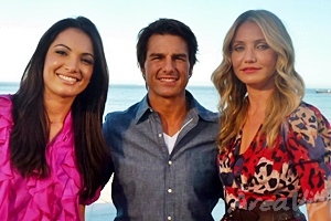 Nesta terça-feira, dia 06, a apresentadora Patrícia Poeta entrevistou os atores Tom Cruise e Cameron Diaz, que estão no Brasil para promover a estreia do filme “Encontro Explosivo”. A conversa – que será exibida no ‘Fantástico’ deste domingo, dia 11 – aconteceu em frente à praia de Copacabana e os atores não pouparam elogios às belezas do Rio de Janeiro. "É uma cidade incrível", elogiou a atriz.
