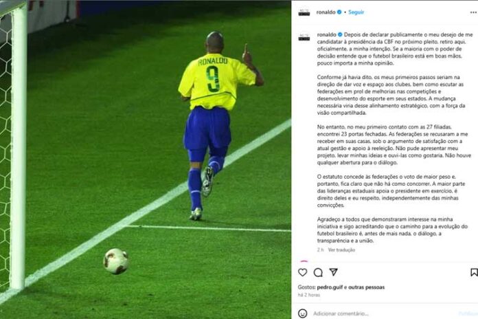 Ronaldo havia demonstrado intenção de concorrer à presidência da CBF