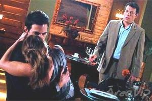 Totalmente revoltada, Betina sai em disparada do restaurante, mas antes para na mesa onde está Carlos e tasca-lhe um tremendo beijo na boca. Bem feito!
